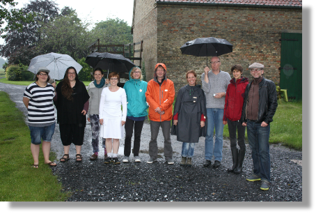 Dem Wetter entsprechend richteten sich die KünstlerInnen ihre Arbeitsplätze ein: Unterm Carport, im Atelier mit Blick nach draußen, im Bus oder unter Bäumen, oder -